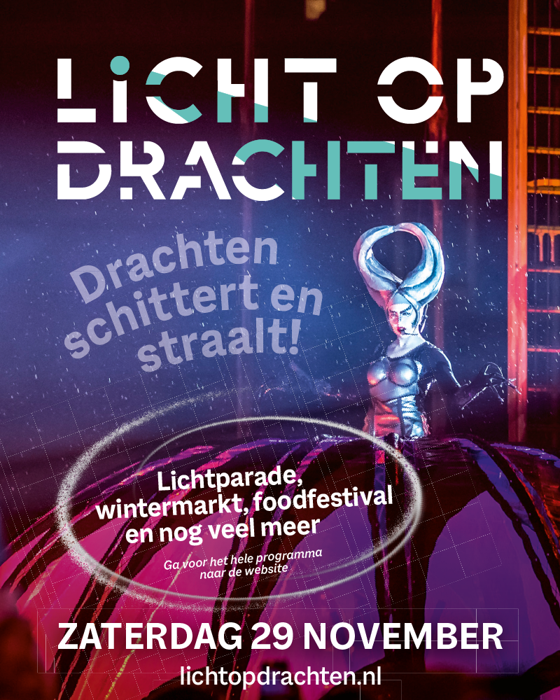 Drachten krijgt een nieuw festival! Licht op Drachten is een verassend lichtfestival voor jong en oud en gratis te bezoeken van vrijdag 24 november t/m zondag 3 december, dagelijks van 17.00 tot 22.00 uur. Een evenement dat bijzonder goed past bij- en een positieve bijdrage levert aan de positionering van Drachten als innovatieve maakstad met een veelzijdig en bruisend centrumgebied.